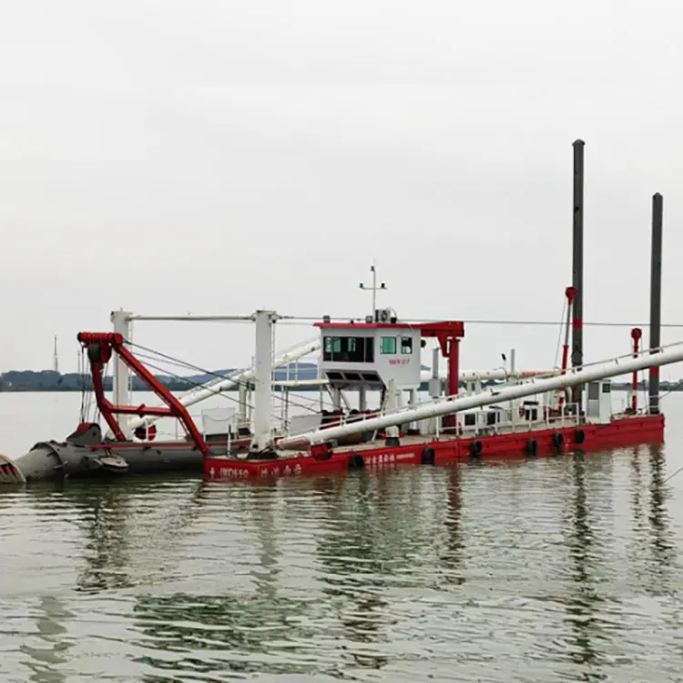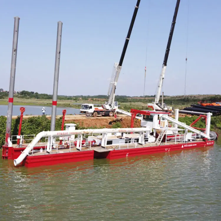 La nostra macchina per dragare la sabbia di fiume con aspirazione con taglierina aziendale con motore diesel Cummins è una macchina con draga per sabbia di fiume con aspirazione taglierina portatile semovente o non semovente con motore diesel Cummins. Lo scafo utilizza una struttura smontabile e scatolare e il suo tipo di smantellamento può essere facilmente assemblato sul posto di lavoro ed essere trasportato di conseguenza su strada, ferrovia e container, conveniente nell'installazione e nello spostamento del posto di lavoro dall'uno all'altro. Il sistema di alimentazione può essere progettato per un sistema elettrico o un sistema di guida del motore diesel in base alle esigenze dei clienti. Le attrezzature sulla draga di sabbia fluviale con motore diesel Cummins sono dotate di soffietto: dispositivo di traslazione, dispositivo di sollevamento della scala della taglierina, spud e gru a ponte.